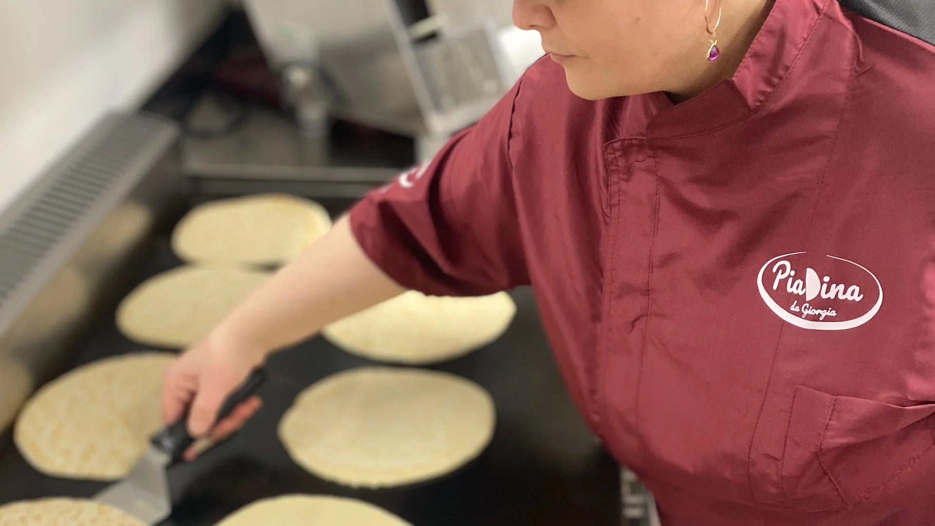 Giorgia bereitet die Piadinas täglich in ihrem Labor von Hand zu, damit sie sie immer frisch online an ihre Kunden versenden kann!